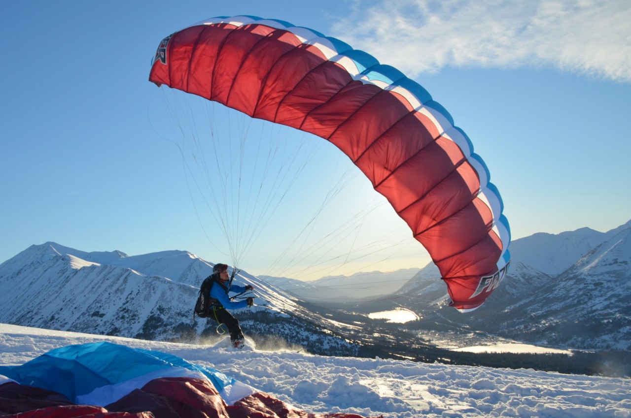 February 8, 2014 A small group of pilots enjoyed a post-snow storm speed flying session on Manitoba Peak near Summit Lake on the Kenai. By Matt Bonney Location: