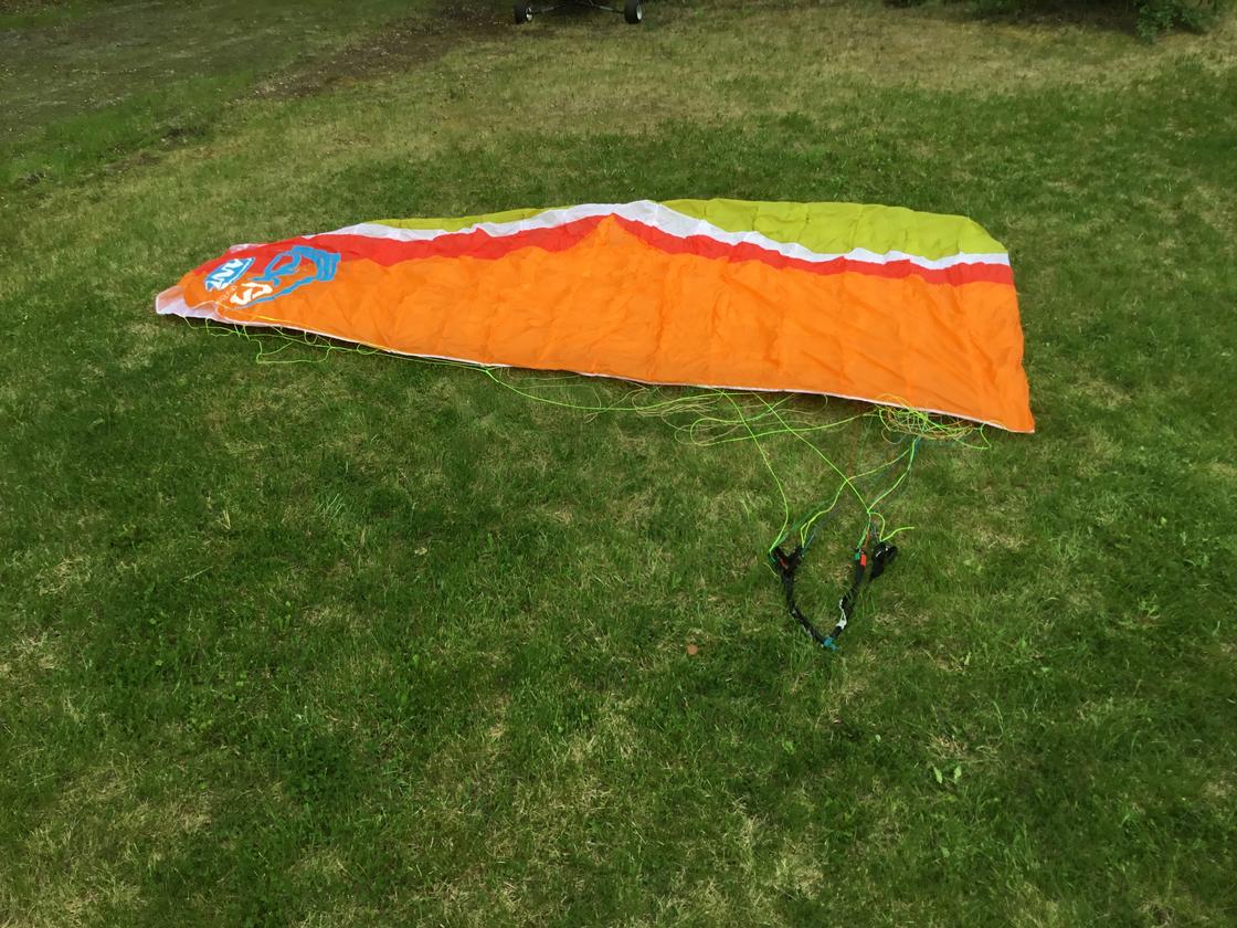AirG “ANI” 15m Hike & Fly, ultralite fabric. Still in new condition. Has about eight foot launch flights and six ski launch flights.