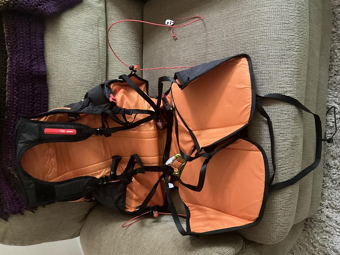 WV TransAlp2, Small. Brand new, 2 sledders on it, just enough to let me know I chose the wrong size. Small is advertised as good for heights under 168cm, (5'6"). I'm a chunky 5'4", not happy with fit either standing or seated, and it will only be worse come Winter. Still convinced this harness has the balance of weight/durability/pack size/comfort (when sized right) I'm looking for in my hike/fly kit, so I'm re-ordering a Medium for me.